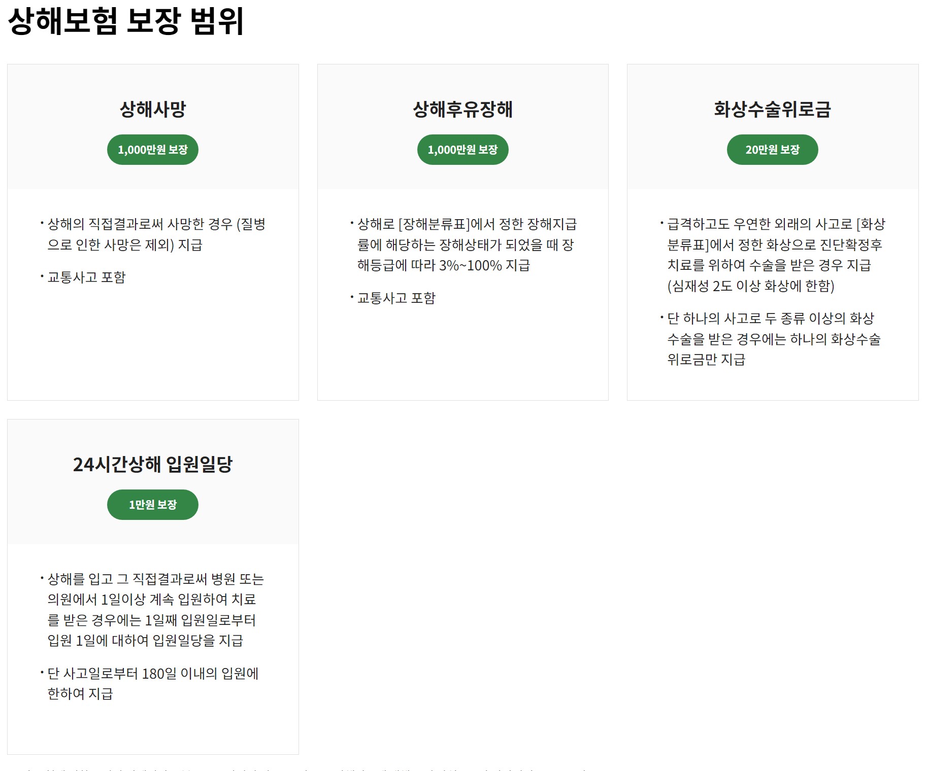 | 가입기간 | 단체상해보험 가입일로부터 보험계약 만료일까지 |