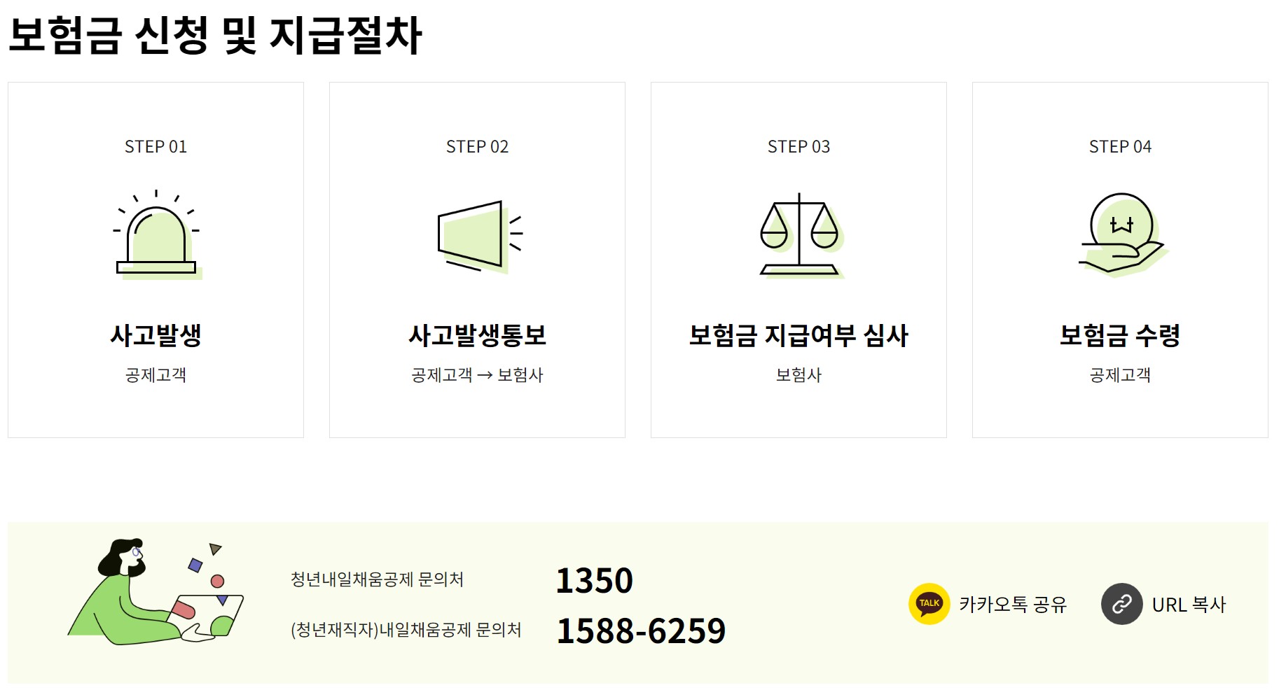 청년 내일채움공제 단체상해보험 보험금 신청 및 지급절차